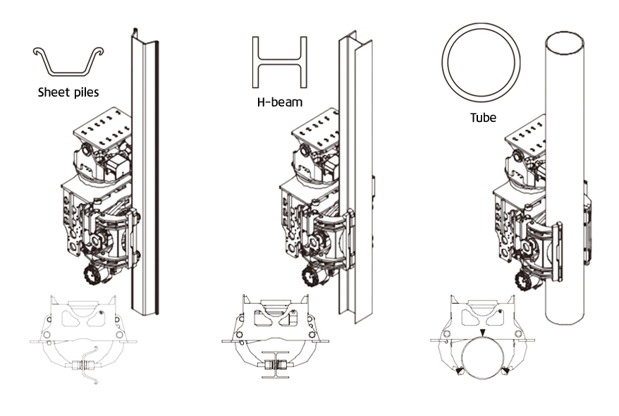 • Sheet pile , H-beam 또는 Tube 작업에 적합